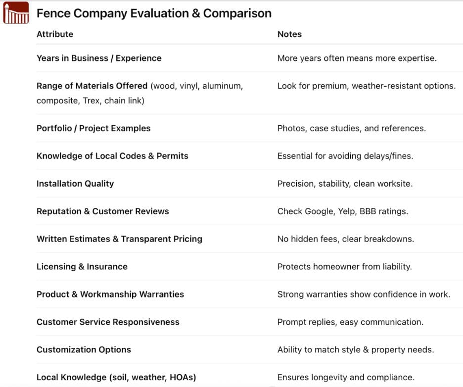 When Evaluating Other Fence Companies In My Area, Use This Convenient Chart To See Just How Superior We Truly Are: